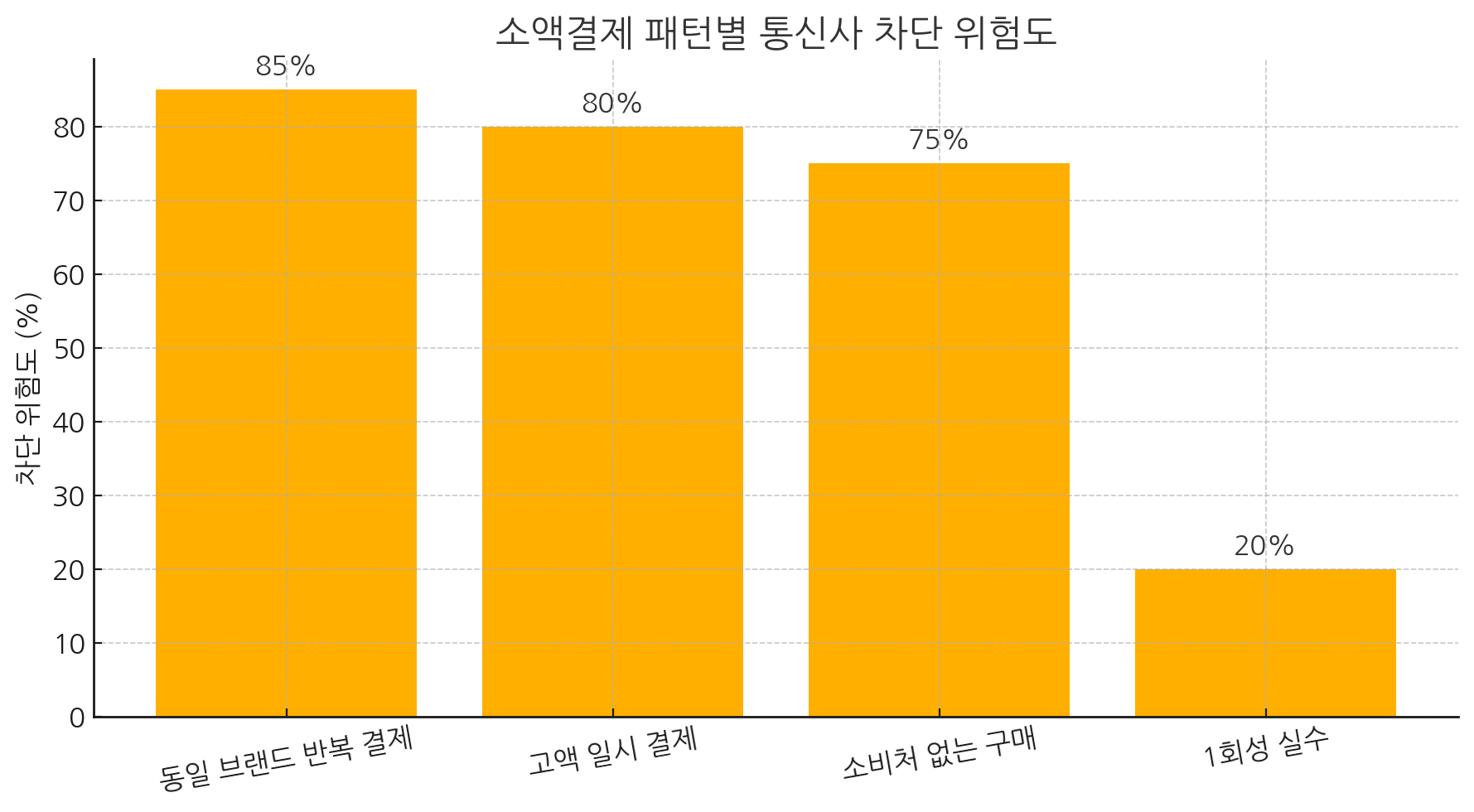- 고액 일시 결제: 80% 이상 차단 가능성