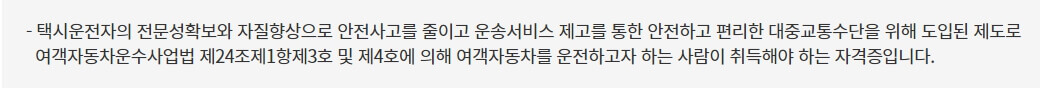 ▷ '신규 운수종사자 교육'을 받으셔야 합니다. 해당 지자체의 교통연수원에서 실시되고 있으며, 16시간의 교육을 이수하시면 됩니다. 교육 이수 후, 3년간 취업하지 않거나 퇴직 후 3년이 지나면 무효처리되니 재취업하려면 교육을 다시 받으셔야 합니다.