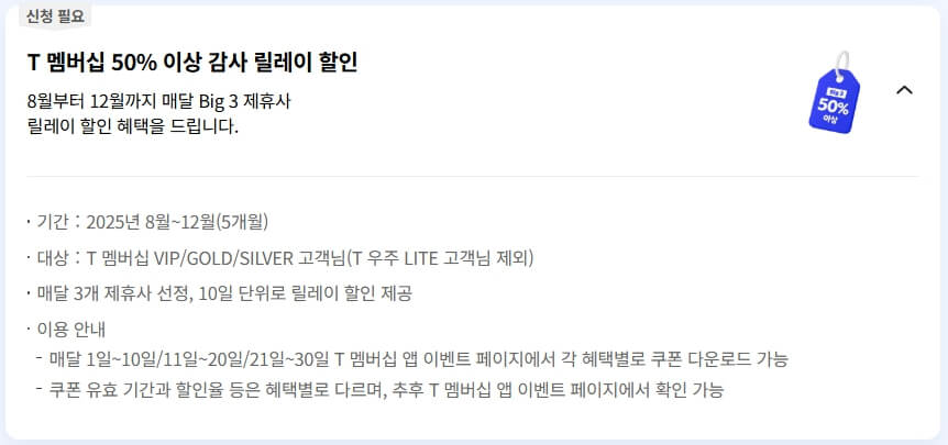 | 2025 SK텔레콤 8월 통신료 50% 할인 총정리 (0) | 2025.07.05 |