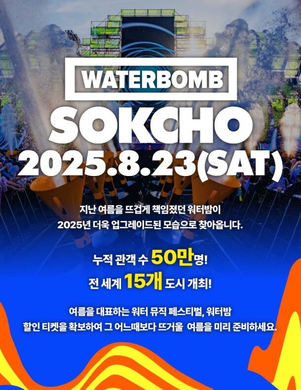 워터밤 속초 페스티벌 정보를 한눈에 확인하라면 [워터밤 속초 2025 출연진 라인업 할인 예매 방법 총정리] 글을 참고해보세요.