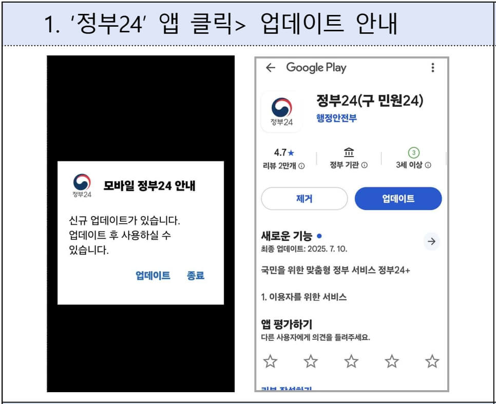 - 정부24 앱 설치