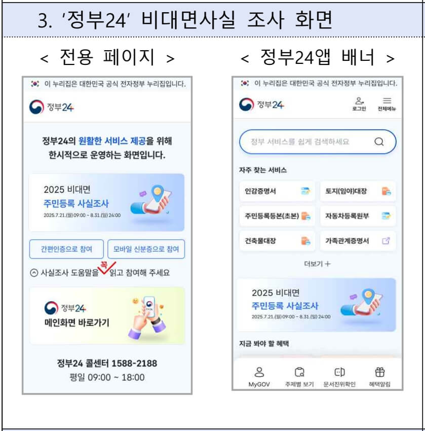 - '주민등록 사실조사' 배너 선택