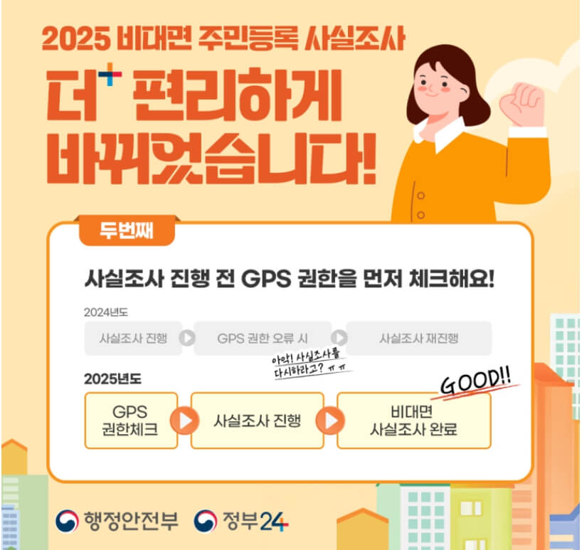 2025년에도 주민등록 사실조사는 전국민을 대상으로 실시됩니다. 행정안전부의 공식 안내처럼, 올해는 오프라인 방문뿐 아니라 정부24 앱 등 비대면 방식까지 도입되어 바쁜 일상 속에서도 간편