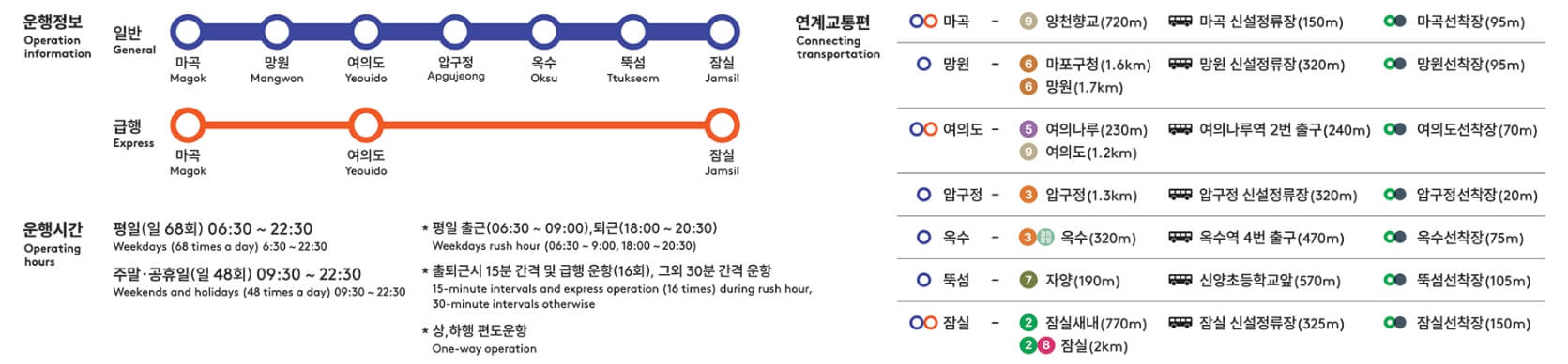 - 성인 3,000원, 청소년 1,800원, 어린이 1,100원(서울시 광역버스 기준). 마곡~잠실(급행)·여의도·망원·뚝섬 등 한강 주요 선착장 노선 전체 운영 계획입니다.