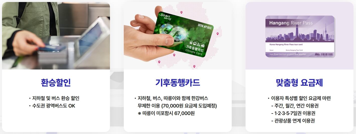 - 교통카드(실물·모바일), 온라인 결제, 환승 할인 전부 지원