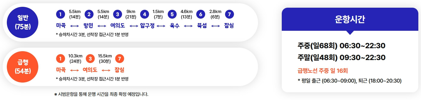 정식운행은 2025년 9월부터 시작될 예정으로, 이때부터 교통카드, 온라인 예매, 환승 할인, 정기권 사용 등 실제 서울시 대중교통처럼 쓸 수 있게 바뀝니다.