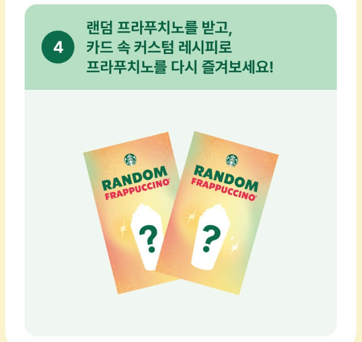 - 매장 방문 후, 바리스타에게 랜덤 프라푸치노 이벤트 참여 의사 밝히기