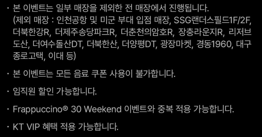 | 스타벅스 프라푸치노 할인 30 weekend (0) | 2025.07.30 |